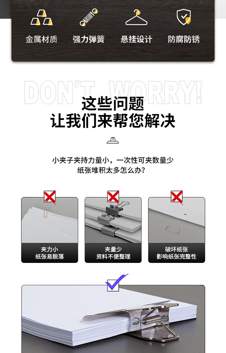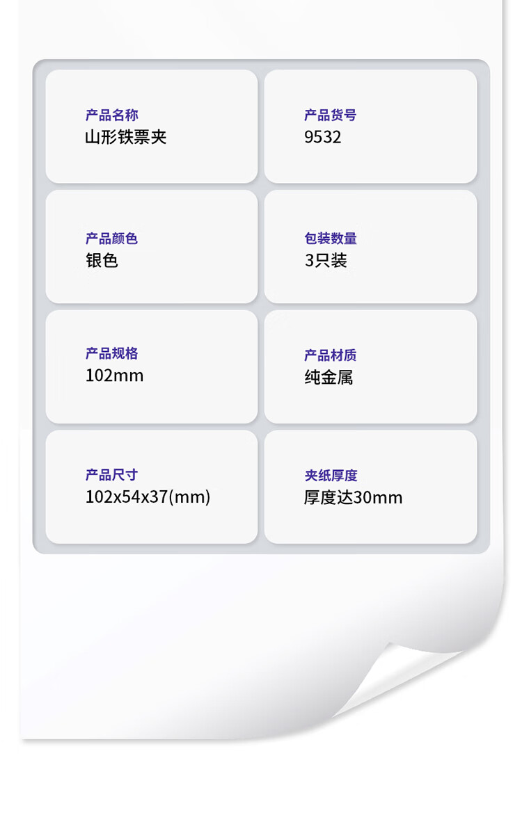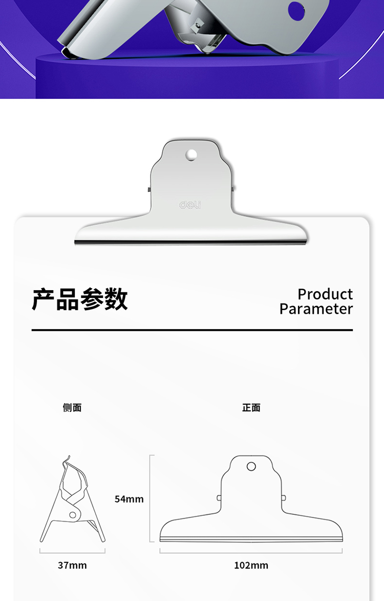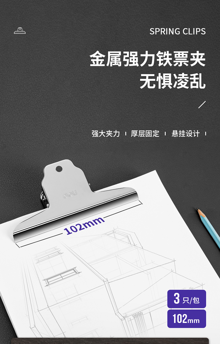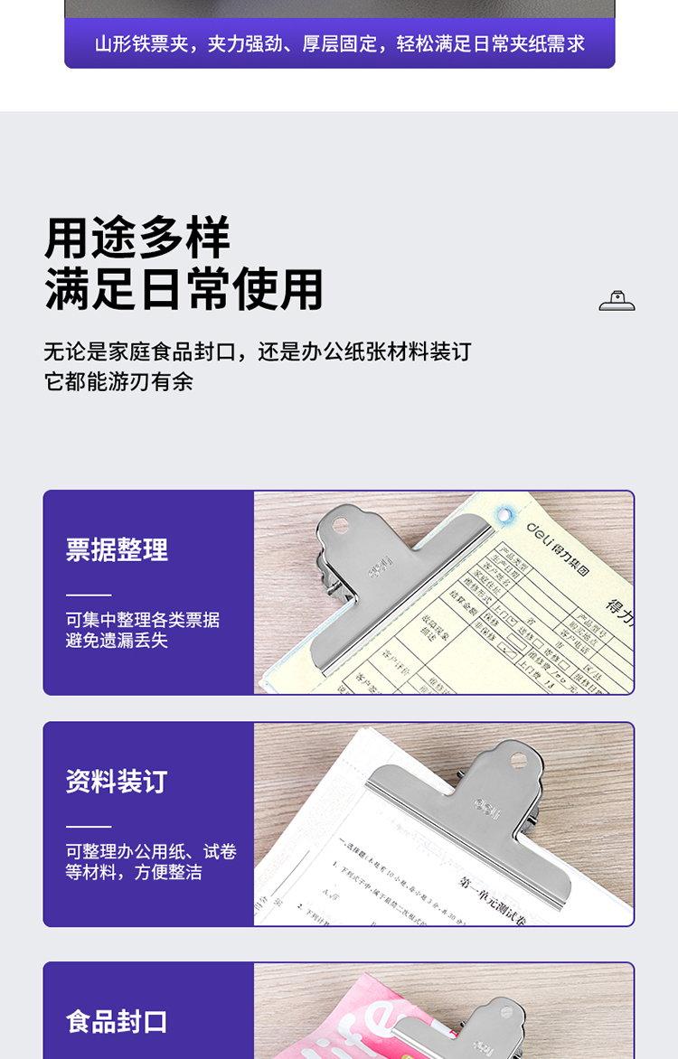 商品名稱:得力9532 山形鐵票夾 102mm中號(hào)財(cái)務(wù)金屬票據(jù)文件夾子 辦公用品 3只/包