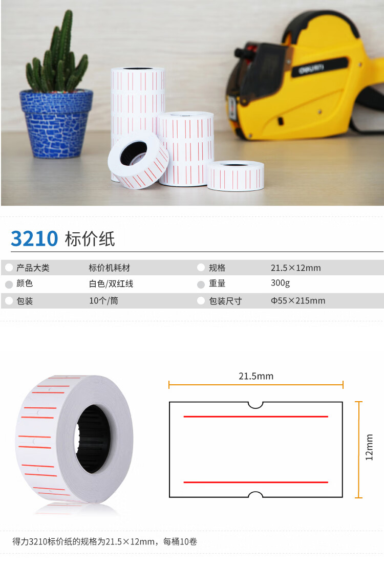 商品名稱:得力3210 單排標(biāo)價(jià)紙 21.5*12mm通用價(jià)格標(biāo)簽紙 10卷/筒