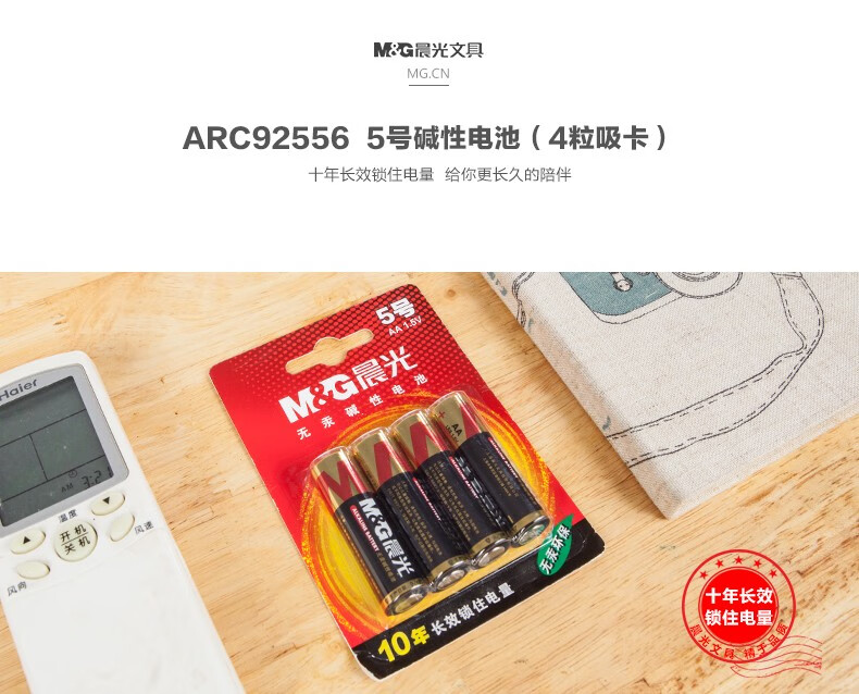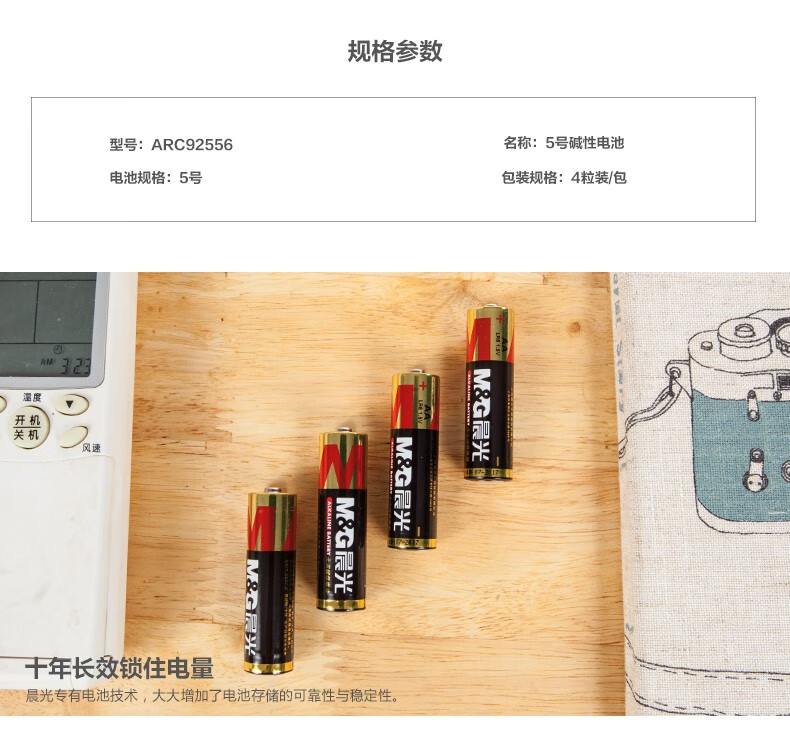 商品名稱(chēng):晨光ARC92556 5號(hào)電池 兒童玩具遙控器鼠標(biāo)無(wú)汞堿性電池 4粒/卡