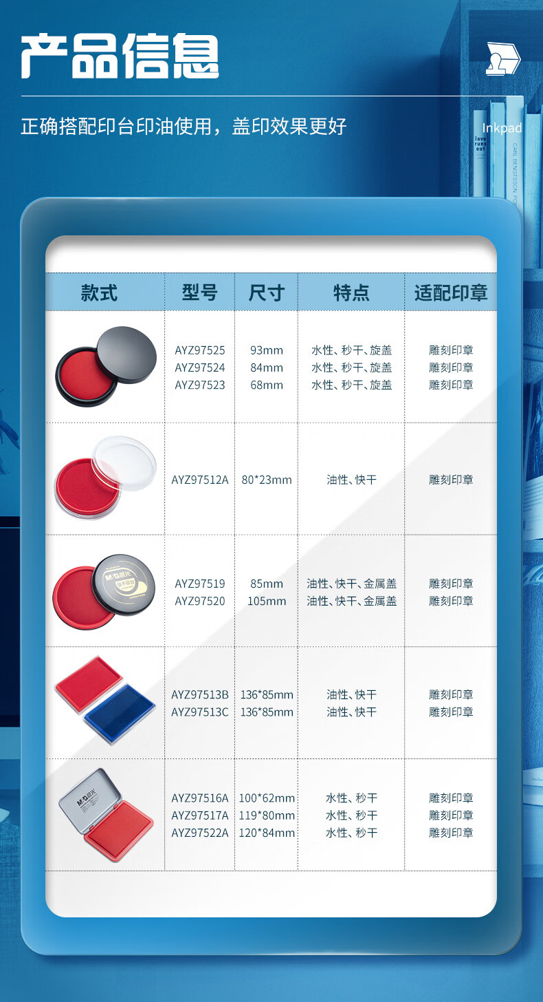 商品名稱:晨光120*80mm金屬方形中號秒干印臺印泥 紅色單個裝AYZ97517