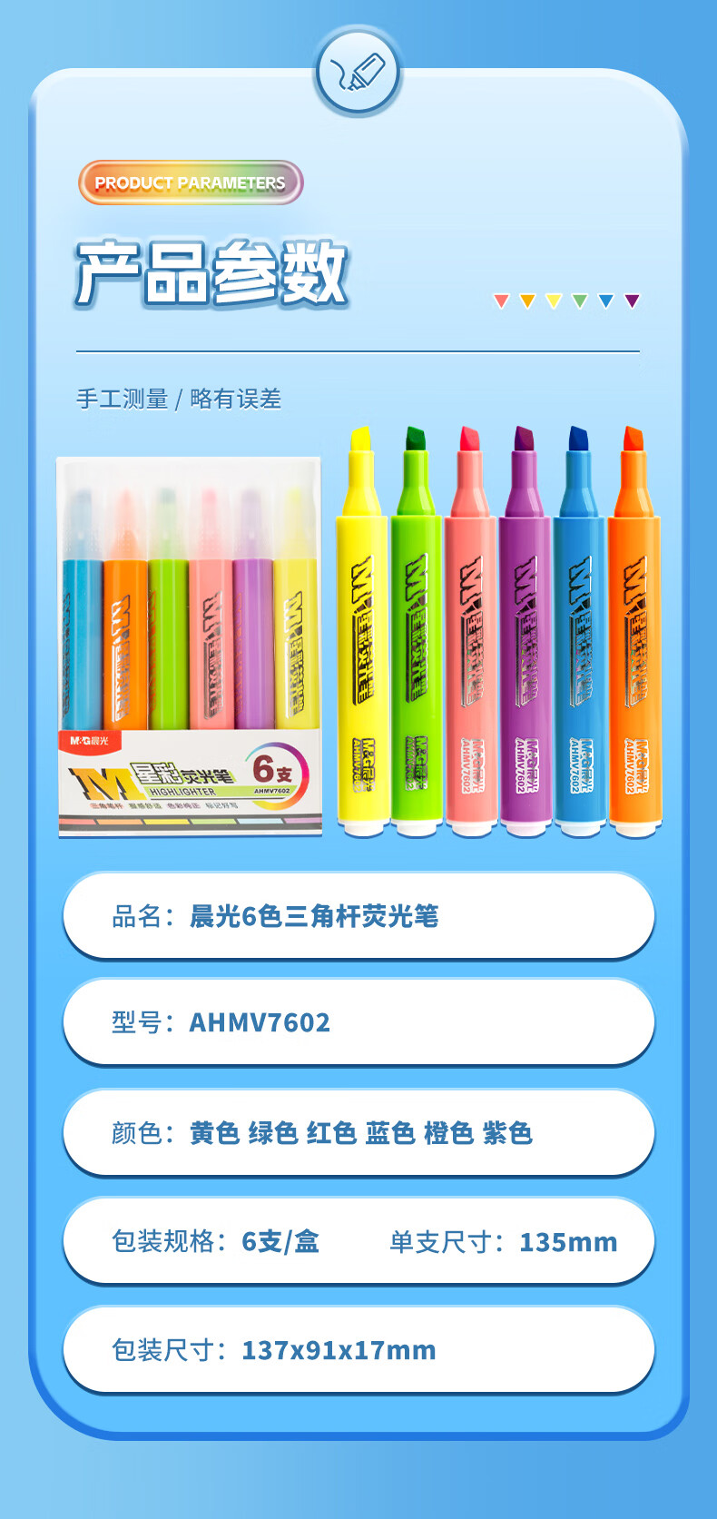 商品名稱:晨光熒光筆 星彩系列單頭水性記號標(biāo)記彩筆 6色/盒AHMV7602