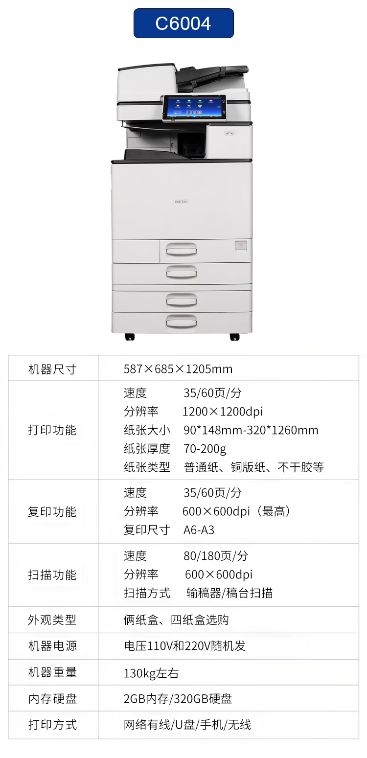 商品名稱:理光6004彩色激光打印機(jī)租賃 湛江復(fù)印機(jī)一體機(jī)出租