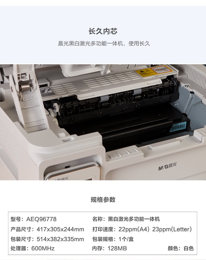 商品名稱:晨光AEQ96778 打印機 A4黑白激光多功能一體機